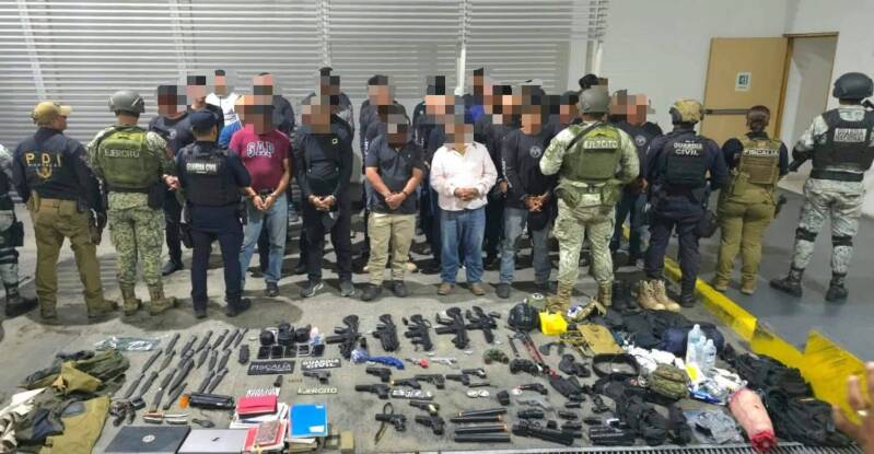Morelia, Michoacán a 23 de septiembre de 2025. –Elementos de los tres órdenes de gobierno, se logró bajo un operativo en conjunto la detención de 37 hombres armados en un campamento clandestino de prácticas militares ubicado en las inmediaciones de los invernaderos del municipio de Vista Hermosa.