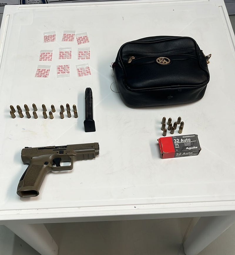 Al ser interceptada, y tras una inspección, Mayra "N" tenía en su posesión una pistola tipo escuadra, calibre 9 mm, con 18 cartuchos útiles, así como una caja con 7 municiones adicionales. Además, se le hallaron 9 envoltorios con la sustancia conocida como cristal, por lo que fue puesta a disposición.