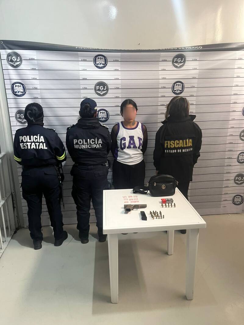 Elementos de la Dirección de Seguridad Pública y Protección Ciudadana, en coordinación con la Policía Estatal y la Fiscalía General de Justicia del Estado de México, aprehendieron a Mayra "N", quien irrumpió armada en una escuela de educación preescolar y a quien se le relaciona con cuatro homicidios.
